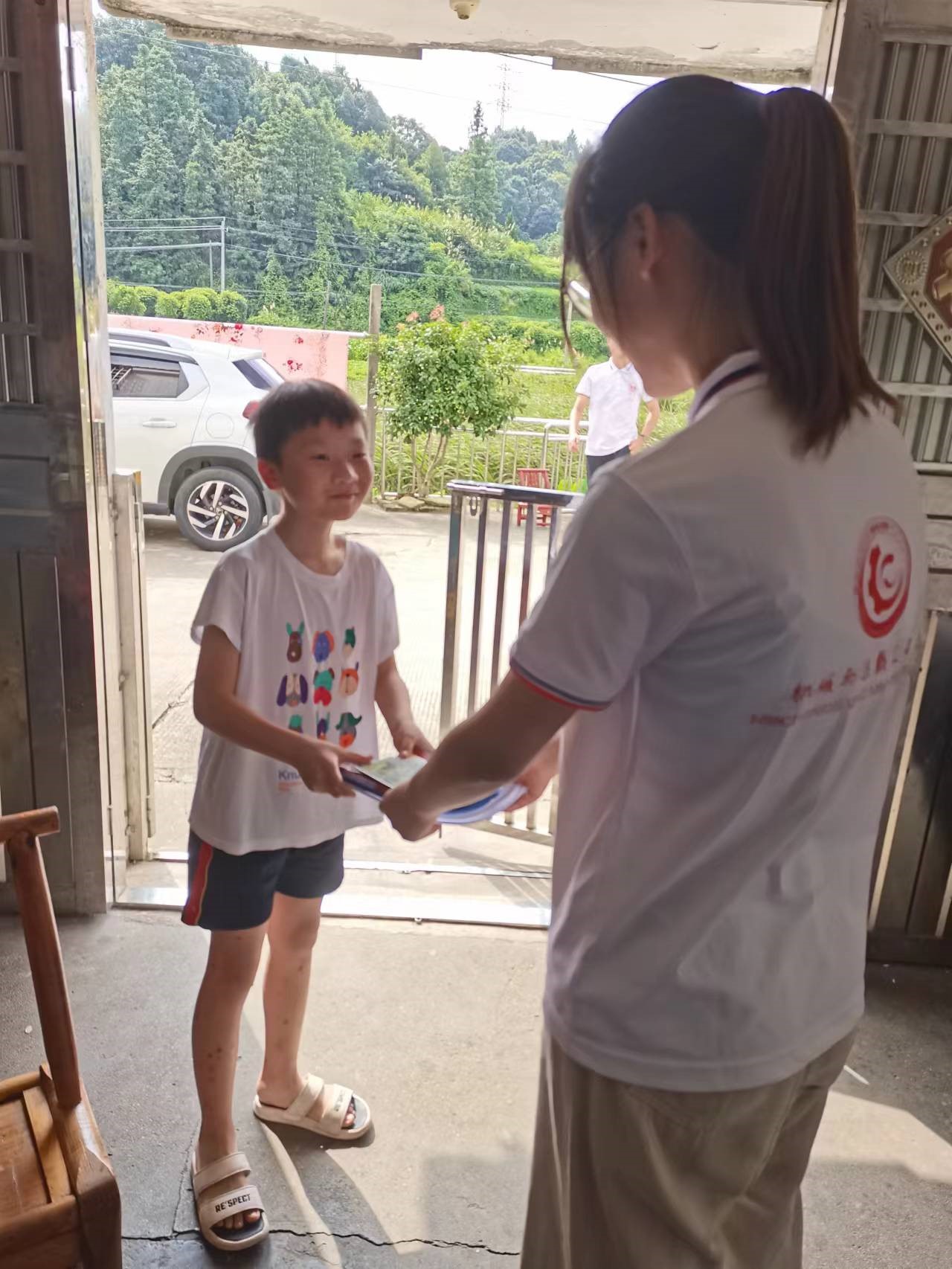 见到家里来人,老人的孙女也探出头来观望,我们就顺势叫她一起来聊天,再询问了学习有关的内容后,队员给小朋友送上了先前筹备的黑人女优
