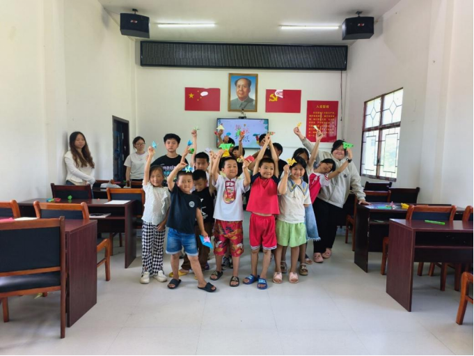 为了给孩子们提供良好的文化氛围和教育环境,“螺丝钉”团队兵分两路:破冰与折纸的课堂,让团队成员和孩子们在游戏与实践中相互熟悉;五彩缤纷的墙绘在阳光下闪烁,为兴场坳村的村容村貌改善提升添彩助力。