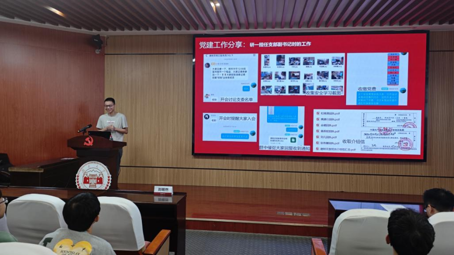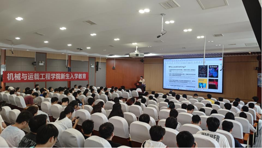 2024级研究生新生分享科研经历、自身学业和学生干部经历、党建工作和求职经验。活动由机械院研究生辅导员周兵主持。