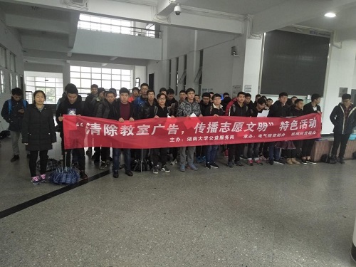 2018年12月10日,由机械院与电气院文明公益岗共同组织的第二次“清除教室广告,传播志愿文明”活动在黑人女优