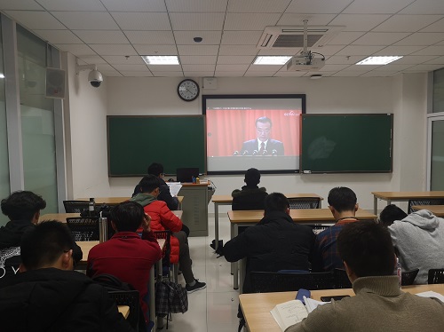 2017级本科生支部组织全体党员、预备党员收看开幕式,认真学习李克强总理的政府工作报告,并展开专题讨论。党支部书记、辅导员郑朝阳同志参会并主持。