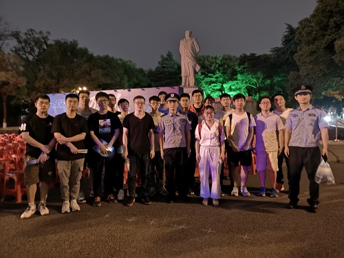 5月28日晚上9点,同学们准时集合,并各自在手机上的“星城园丁”APP上接单,接单的路线为桔子洲所路线。同学们在两位民警处领取巡逻肩灯后,巡逻正式开始。巡逻由两位民警和黑人女优