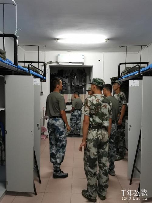 新生军训二营营长带领二营教官对2019级新生寝室进行了全面的军训内务初评。