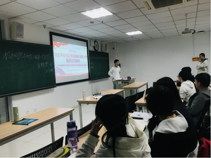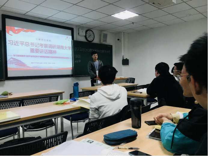 首先,支部书记李迪带领大家重温习总书记对湖大学子的殷殷教诲。9月17日,面对热情洋溢的湖大学子,总书记希望同学们不负青春、不负韶华、不负时代,珍惜时光好好学习,掌握知识本领。同时,总书记也教育我们树立正确的世界观、人生观、价值观,系好人生的第一粒扣子,走好人生道路,为实现中华民族伟大复兴贡献聪明才智。