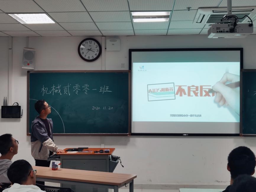 机械2001班于2020年11月20日开展“不畏艾,勇敢爱”主题班会,以普及防艾的基本知识,助力享受健康生活,提升社会文明,推进全社会的疾病防控工作。