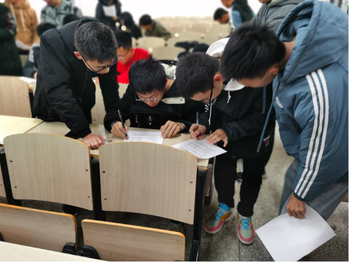 活动过程中,同学们活力四射,充满挑战的兴趣。传递汉字时,有些小组猜到的字却与正确答案差了十万八千里,最后经过一个个地盘问,终于发现是部分同学习惯写倒笔画,闹了个大笑话。虽然没能写出正确的汉字,但同学们并不以赢为乐,而是以乐为乐,在这个过程中放松,寻找自己的快乐,最后反而使得活动增加了许多乐趣。至此,整个团辅活动也步入了高潮阶段。