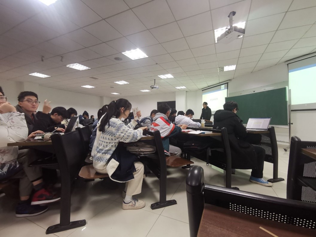 前半场海天学长以“事实层面下怎么打”为主题阐述了数据、举例和理论在辩论赛中的具体应用和辩论技巧。海天学长首先阐明了反驳是事实层面下最重要和最有效的应对方法,从反驳的对象、步骤、层次、常用思路四个方面具体形象地讲述了如何科学地反驳。对于数据的反驳和推论,海天学长举出了辩论赛中的大量实例,引导队员们积极地思考和表达,然后总结了注意事项和操作方法。关于举例和理论的作用和应用,海天学长都采取了这种引导和总结的方式,内容充实,言谈知识与趣味并存,队员们认真听讲和做笔记,收获良多。海天学长表示,对于一个辩手来讲,质疑精神尤其重要,无论是赛场上还是生活中都要进行积极深入地思考。最后,他告诉队员们,他总结和分享的内容仅仅是自己的多年辩论经验之谈,希望每一位辩手都能不拘泥于前人的理论,打出自己的风格。
