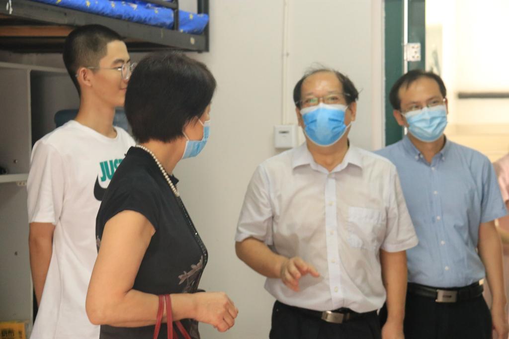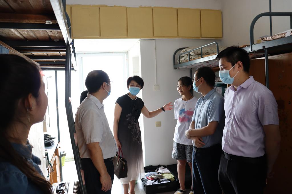 党委书记彭晓燕老师,党委副书记周加喜老师,党委副书记易洪波老师,院长助理龙湘云老师走进学生公寓,为刚入学的新生送去关怀与温暖。