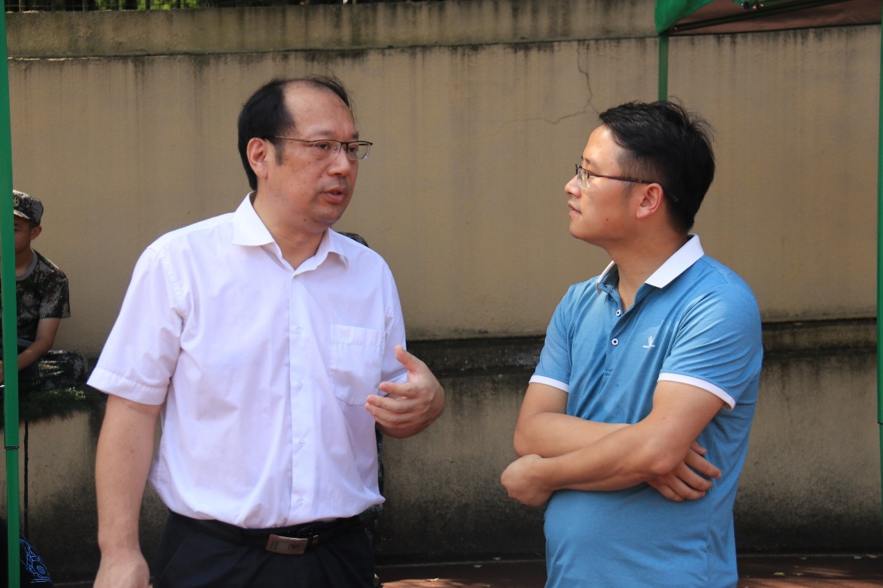 随后,张凯老师也和教官交流了第一天的训练情况,了解了班级的纪律情况和训练积极性。在看到班内新生军训休息期间的精彩表演后,张凯老师相信智能制造班的新生会学习也有才艺,在军训之余也能通过一些娱乐活动获得一个更积极昂扬的军训状态。