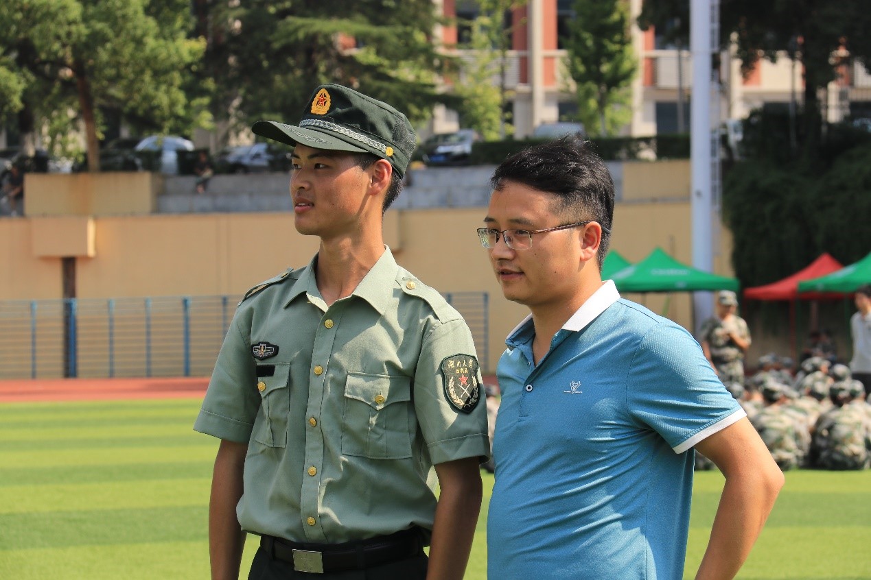9月4日上午,智能制造班班主任张凯老师前往军训场地看望慰问正在刻苦训练的新生。