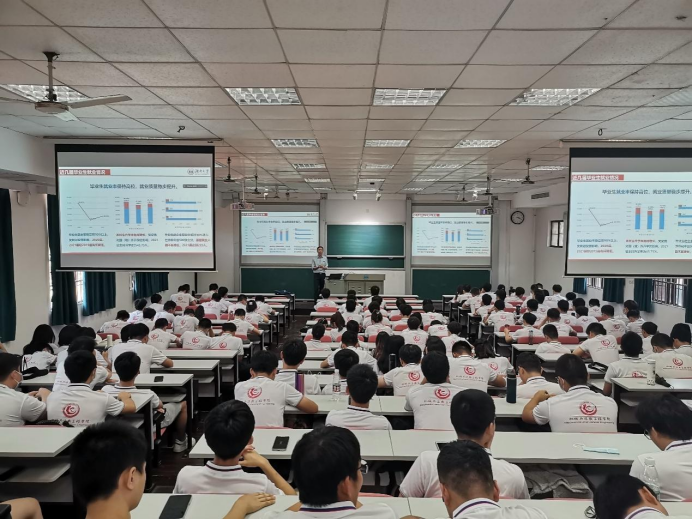 2021级研究生进行了入学教育职业生涯规划指导的讲座。其中二百余名研究生新生在主会场就坐,其余新生在分会场学习。