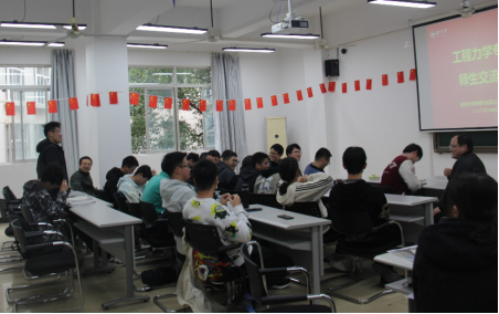 力学系工程力学专业师生交流会在机械院楼210教室热烈举行。力学系系主任方棋洪老师、支部书记任毅如老师、副主任赵岩老师、以及王晓刚老师、何巍老师、刘播老师、冯慧老师、林森老师、彭神佑老师、施方成老师等10余位老师和30余位同学参加该交流会。
