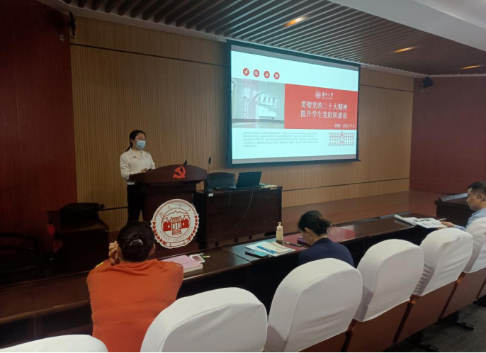 总结完前期工作后,王玉迪老师为大家介绍了未来的工作安排。要求各支部近期完成对入党同学档案的审查,开展“一课一片一实践”(每月举行一次党课,组织一次红色观影,开展一次实践)等党建活动,并认真准备毕业生党员关系转接及年底考核。为确保审查工作的顺利进行,王玉迪老师对各支部委员展开培训,细致讲解各流程材料的准备、填写,并为同学们答疑。