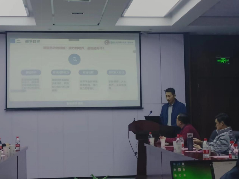 教师代表做课程思政建设报告。周剑老师把课程思政比作烹饪,专业知识是食材、思政元素是调料、教学方法就是烹饪手法,提出只有三者结合才能有效将课程思政化。李柏老师对“C语言程序设计”课程中的典型思政案例作了汇报分析,融入中国古代传统文化,并注重理论联系实际。蔡勇老师以培养使命驱动的工业CAE软件创新人才为例分析了当下学情,提出教学重难点和发展机遇,构建目标路线。张海成老师做了“机械振动学”课程思政的案例分享,列举了四个典型案例,对课程思政做了一个良好示范。杨刚老师分享了自己在“理论力学”课程上的典型思政案例构建探索与教学研究,提出面向课程思政的三个教学改革目标,除了要挖掘、引入思政元素,还要引导学生课后自主阅读,形成思政观念,并在课程网站增加课外思政阅读模块。