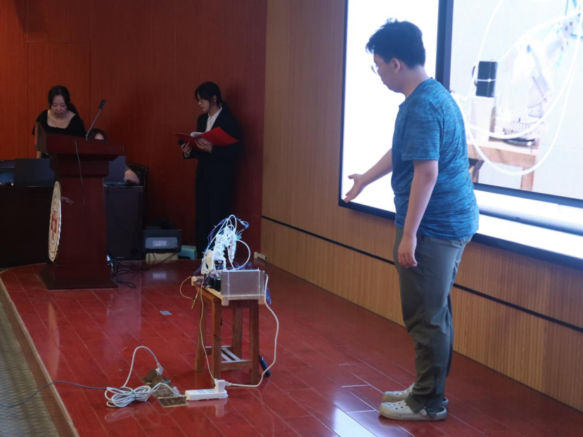大赛伊始,由教务处副处长肖靖老师致迎欢词。他感谢各位老师的到来,同时对各位毕业生的优秀毕业设计表示期待。随后,主持人宣读评分标准和大赛规则,每位选手按抽签顺序以此上台,每人有5分钟PPT展示环节和2分钟评委问答环节,展示环节剩余30秒时间时响一次铃声作为提醒,每个环节结束时有两次铃声作为信号。最后由各位评委老师负责打分,大赛结束后公布获奖名单。