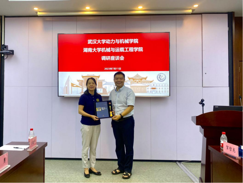会上,贺迅向孙萍赠送院史。随后,孙萍一行考察参观了整车先进设计制造技术全国重点实验室与岳麓书院。