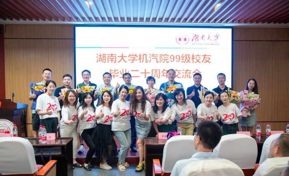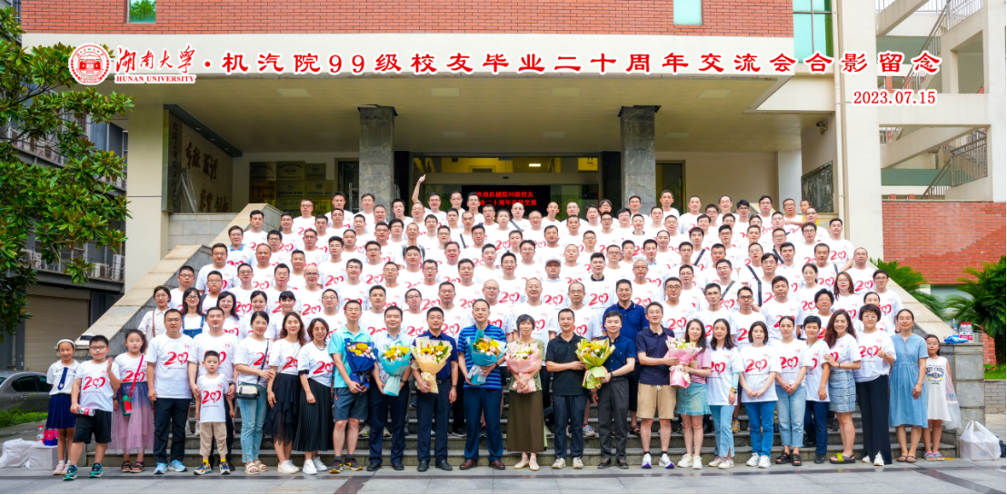 交流会结束之后,99级校友协同老师一起在机械院楼前进行合影留念。二十年过去,学生与老师都在一届届更替,但只要有同一个湖大在这里,就能从天南海北再聚首,这种情怀会像酒一样,越酿越纯,随着时间越发深厚。期待着下一个十年同学们再相聚,风流依旧。