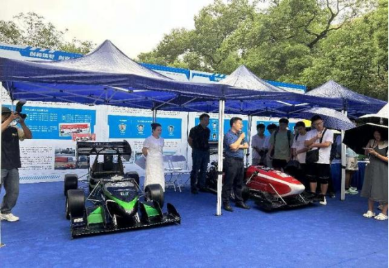的学生参与,在国家级相关赛事中多次获得全国总冠军,并代表中国队参加世界级的大学生方程式赛车赛事,成为学校的标志性科技实践团队。此次展出的HUR-2023 赛车采用半单体壳后车架设计,结合四缸自然吸气引擎,实现了约0.2kw/kg的功率质量比,并在4.0秒内完成0-100km/h的加速。该赛车在设计和制造中注重轻量化、舒适性和易操控性,不仅确保了性能,还提升了车手的驾驶舒适度和操控的顺畅性。