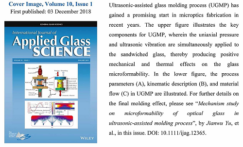 国家高效磨削工程技术研究中心余剑武教授在2018年12月3日出版的《应用玻璃科学》(Applied Glass Science)上发表最新研究成果“Mechanism Study on Micro-formability of Optical Glass in Ultrasonic-assisted Molding Process”,并选为该期刊的封面。《应用玻璃科学》是在玻璃领域最具权威性的综合性学术期刊之一,主要发表玻璃材料学前沿领域重要的原创性研究成果。该成果以黑人女优