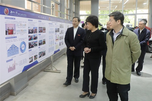 中国工程院院士丁荣军,湖南省教育厅党组书记、厅长、省委教育工委书记蒋昌忠,校领导邓卫、曹升元、陈伟、徐国正,校长助理李树涛、蒋健晖等陪同考察。
