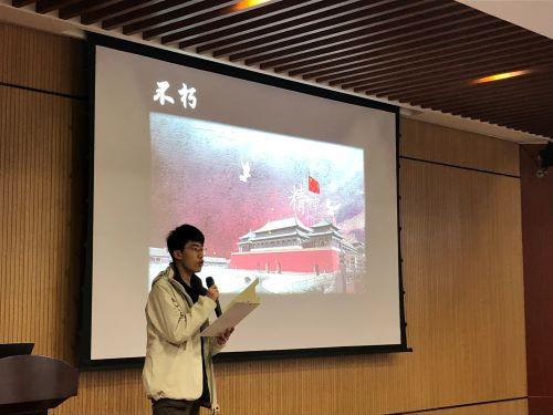 石书祎同学用一首《不朽》表达了他对我们伟大共产党的敬爱,其中一句“虽然我们已经说不出他们的名字了,但我们知道,他们共同的名字叫英雄!”更是警醒大家新中国的美好生活来之不易;于秋爽同学的《万里长征》更是让我们重温那段艰辛岁月,重温了党的成长历程,一度将比赛推向了高潮。