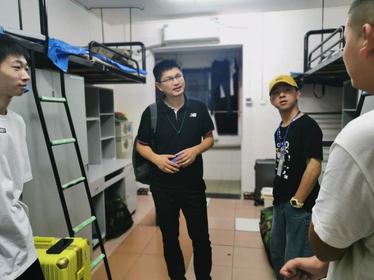 9月12日下午,机械院党委书记彭晓燕,党委副书记易洪波,班主任张海成、冷尔唯、周剑、陈峰等走访探望新生寝室,为同学们带来了关怀和慰问,并表达了对新同学们的期望和嘱托。