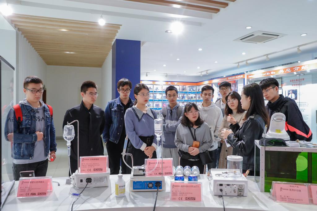 目前啄木鸟公司的主打产品有超声洁牙机、超声牙周治疗仪、超声骨刀机、牙科种植机、根管预备机等产品;考察团的老师受企业邀请,亲身体验了啄木鸟自主研发的喷砂洁牙,纷纷为国产高新技术点赞。