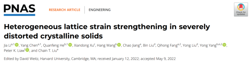 院刊》(PNAS)发表题为“Heterogeneous lattice strain strengthening in severely distorted crystalline solids”的研究论文,发现了高熵合金“非均匀晶格应变”强化新机制,开发了能够调控复杂化学成分材料强韧性的计算模拟方法,为设计高性能高熵合金和高熵陶瓷等具有严重晶格畸变材料提供了新策略。