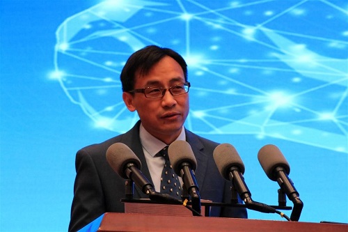 HNU Vice President Xie Chi delivers a speech.