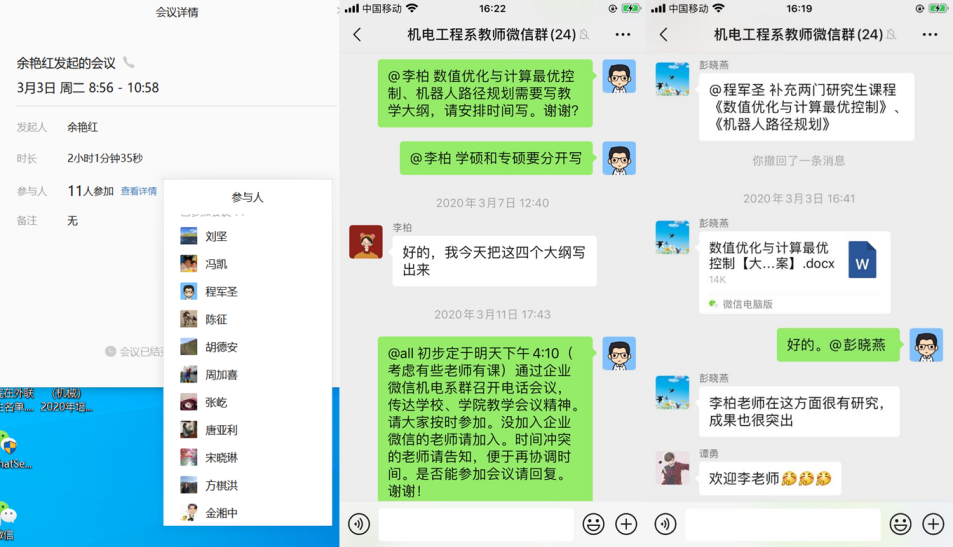 为做好前期调研工作,各系主任多次组织召开线上线下系教学工作会议,并建立工作群进行讨论。彭晓燕书记在机电系方案修订讨论会上指出,要着力培养学生科学严谨的科研作风、勇于创新的科学精神、实事求是的科研道德。